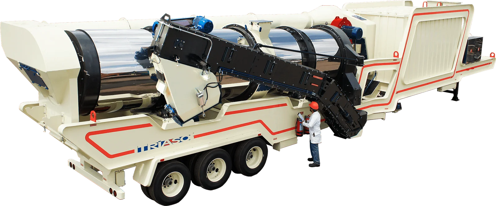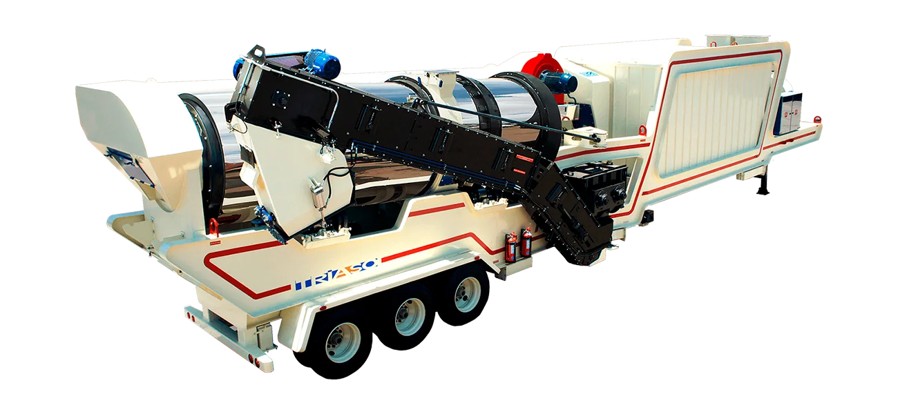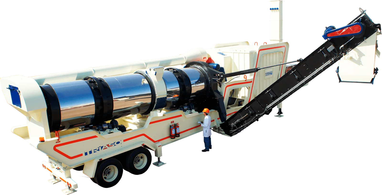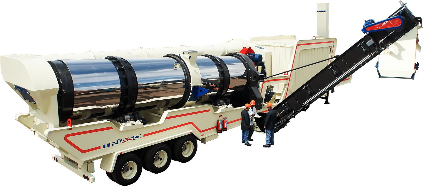 Triaso® drum mixers are engineered for continuous and efficient hot-mix production, combining drying and mixing in a single integrated process. Built for durability and consistent performance, they ensure precise heat transfer and thorough blending of materials, producing a uniform, high performance hot-mix. With heavy-duty construction and low-maintenance components, the drum mixers are ideal for both relocatable plants and mobile applications, ensuring dependable operation in demanding environments.