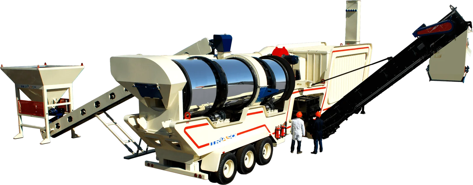Triaso® drum mixers are engineered for continuous and efficient hot-mix production, combining drying and mixing in a single integrated process. Built for durability and consistent performance, they ensure precise heat transfer and thorough blending of materials, producing a uniform, high performance hot-mix. With heavy-duty construction and low-maintenance components, the drum mixers are ideal for both relocatable plants and mobile applications, ensuring dependable operation in demanding environments.