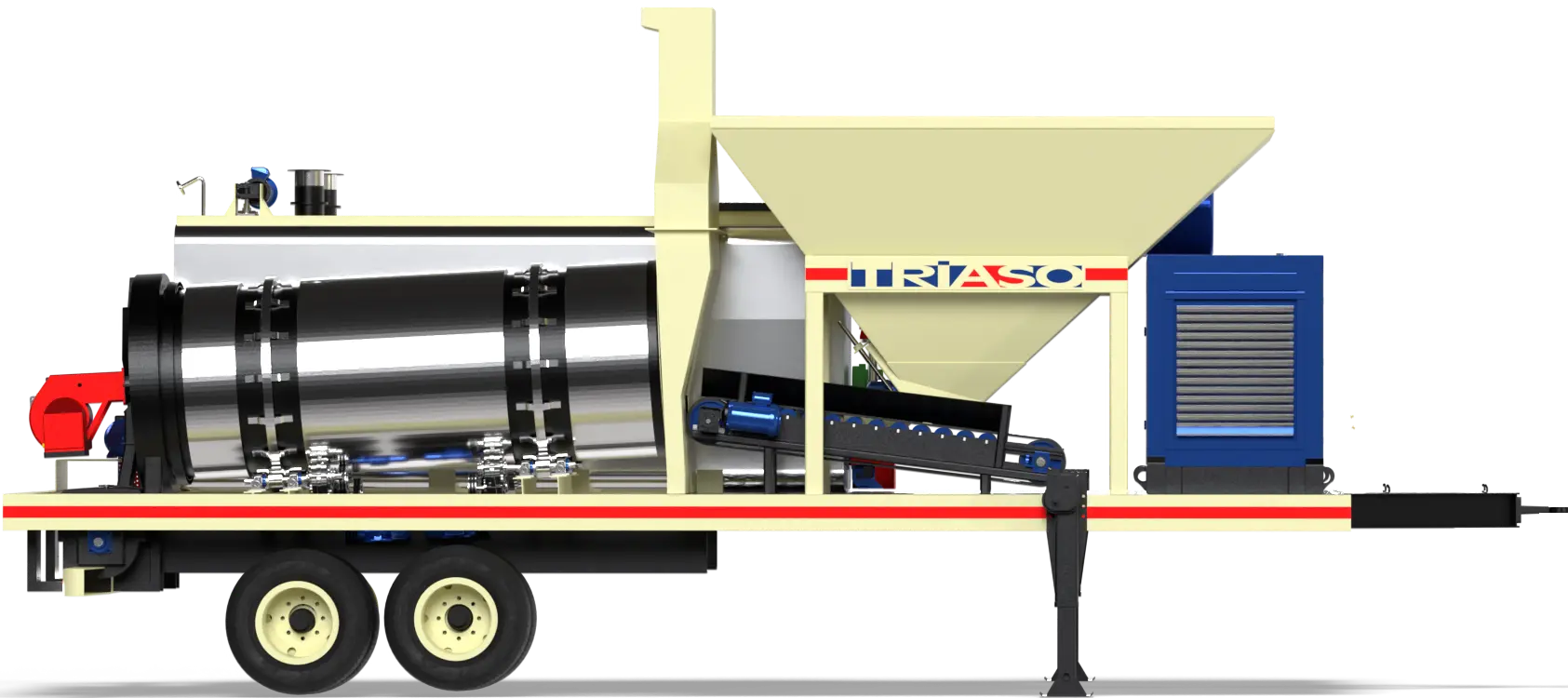 The Triaso® 10 TPH Integral Asphalt Plant is engineered for rapid deployment and independent operation. Ideal for remote or temporary jobsites, enabling fully autonomous asphalt production anywhere.